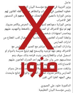 نفت وزارة التربية العراقية اليوم، الجمعة 11 نيسان 2025، ما تم تداوله على مواقع التواصل الاجتماعي وبعض الصفحات حول مقابلة وزير التربية، إبراهيم نامس الجبوري، مع إحدى المؤسسات التربوية. وأكد المكتب الإعلامي للوزارة أن الخبر الذي تم تداوله هو “مزيف وعار عن الصحة”. كما شدد البيان على ضرورة عدم الاعتماد على الأخبار غير الموثوقة، مشيراً إلى أن الأخبار الرسمية يجب أن تُستقى من الصفحة الرسمية للوزارة والمصادر الموثوقة لها.