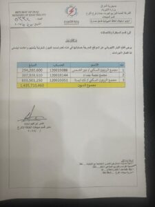 وبحسب مسؤولون، فإن هذا الديون في ذمة مستثمرين، وقطع الكهرباء حق طبيعي لوزارة الكهرباء، إذ بلغ حجم الديون قرابة مليار ونص مليار دينار عراقي، كما موضح في الوثيقة ادناه