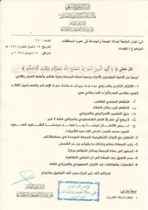 مكتب الصدر ينشر التعليمات الخاصة بصلاة الجمعة والتظاهرات السلمية (وثيقة)